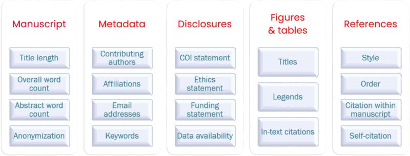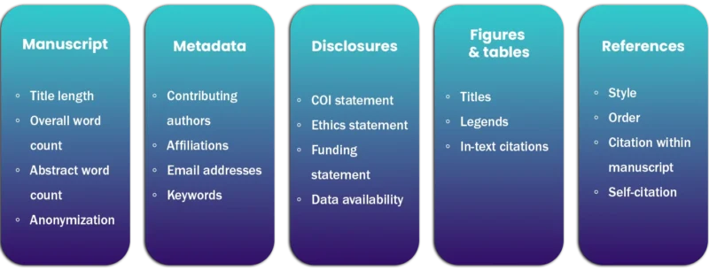 Automated checks — Title/author consistency, citation order, figure captions, anonymization.